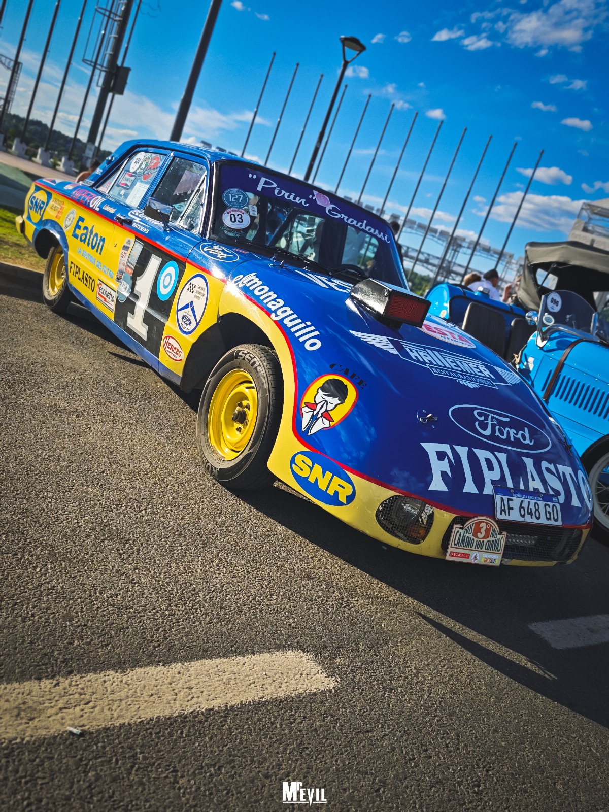 Para la tercera edición del DESAFIO NOCTURNO 100 CURVAS 2025 se convocaron alrededor de 50 autos  de diferentes épocas, incluyendo la presencia estelar del Ford Falcon campeón de Turismo Carretera de Héctor Luis “Pirín” Gradassi conducido por su esposa Ana María.