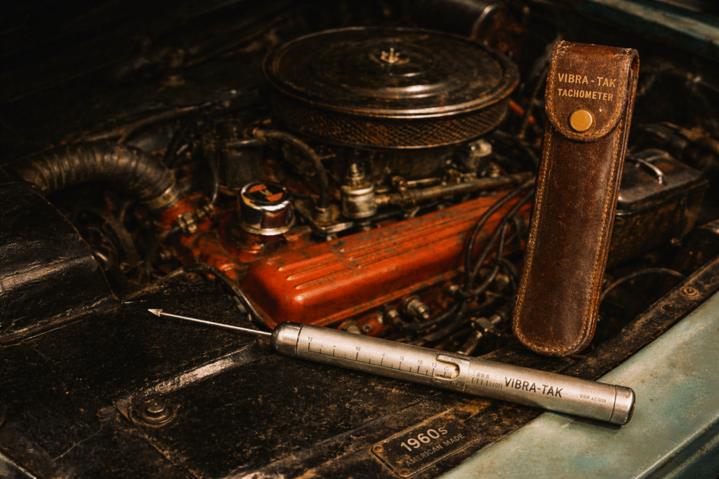 El Vibra-Tak es un tacómetro mecánico que mide RPM sin electricidad, usando resonancia.